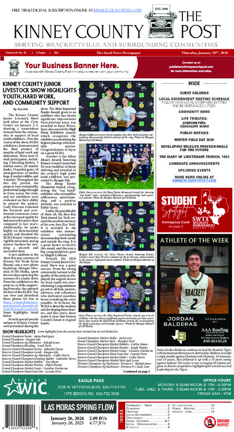 The Kinney County Junior Livestock Show took place at the Civic Center on January 2-3, drawing a...